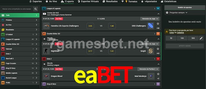 O eabet oferece uma grande seleção de opções de apostas em e-sports com probabilidades competitivas